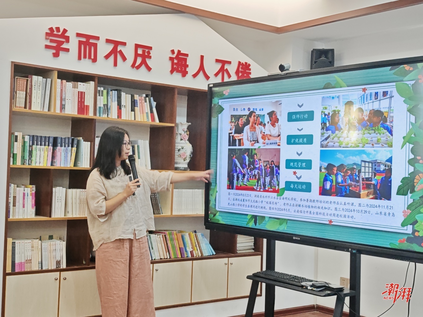 城南中學教師陳媛萍帶來《講臺下,藏著我最珍視的時光》,從去年學校教師節活動中,學生用畫筆勾勒老師授課的專注模樣,到“師恩相伴,暢跑湘橋”5公里長跑活動里,孩子們互相攙扶著向終點沖刺,再到“保護母親河”志愿活動中,學生們細致撿拾煙頭、紙屑,還有她發起的潮州工夫茶社團,讓學生在研習茶道過程中涵養文化自信。最后,陳媛萍老師展示學生設計的文創作品,言語間滿是作為教育者的自豪。