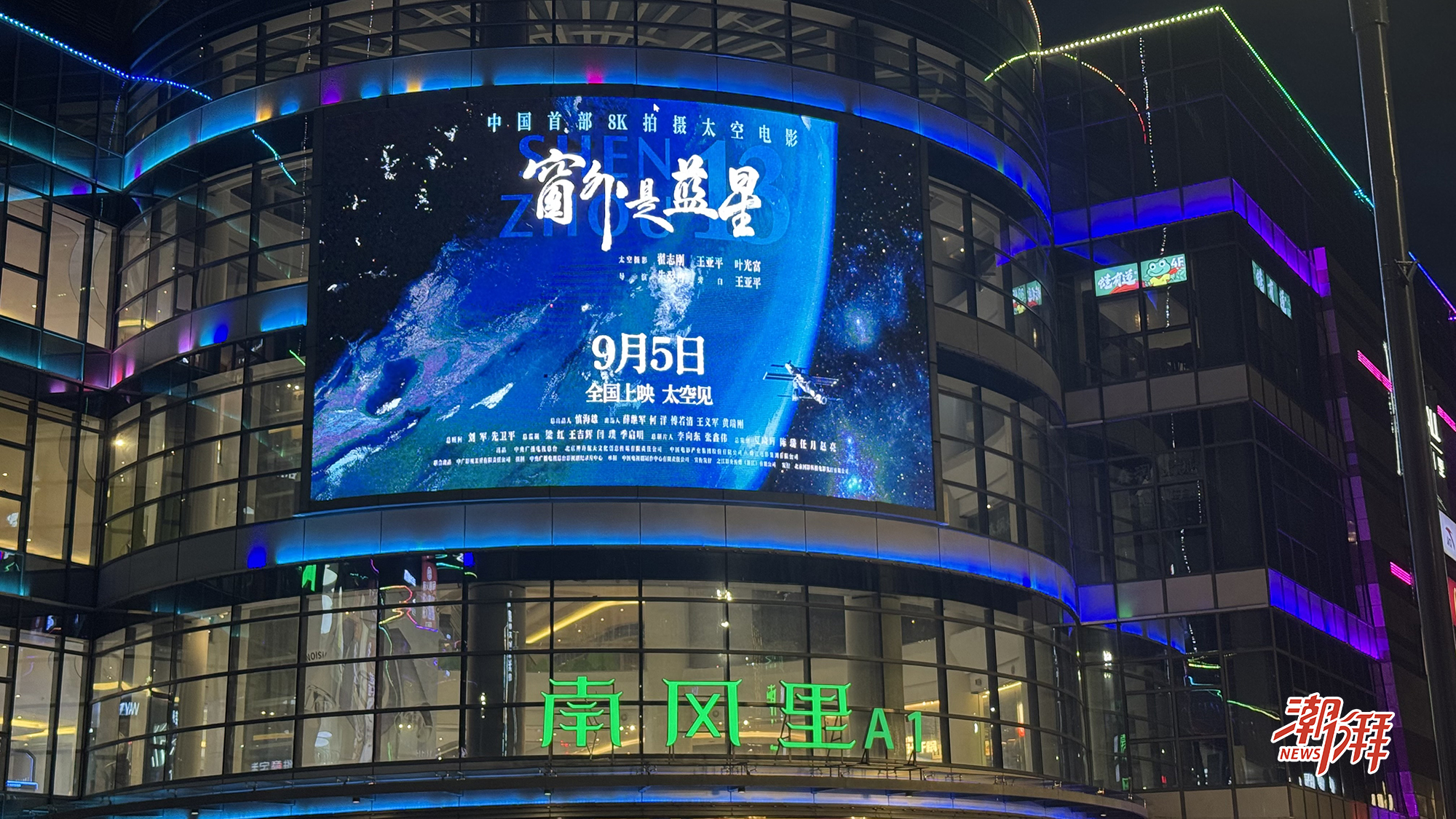 昨天晚上,潮州城區多個點位的電子屏、樓體廣告與走馬字幕同步亮起,滾動播放影片《窗外是藍星》的宣傳畫面與標語,以璀璨光影致敬中國首部太空電影,邀請廣大市民共赴一場充滿中國式浪漫的太空之旅。