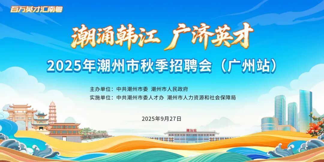 百萬英才匯南粵|潮州超百家企事業(yè)單位9月27日在廣州大學(xué)城“職”等你來