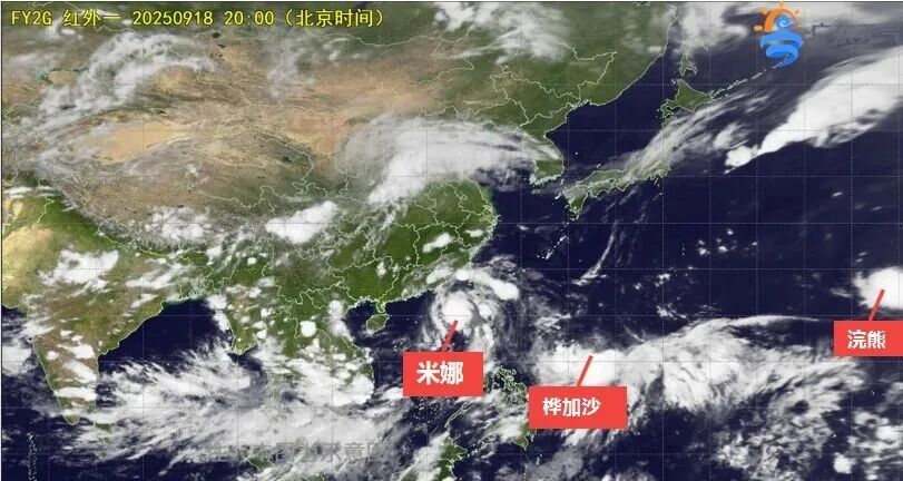 至此,這兩個臺風與第17號臺風“米娜”形成“三臺共舞”的局面。
