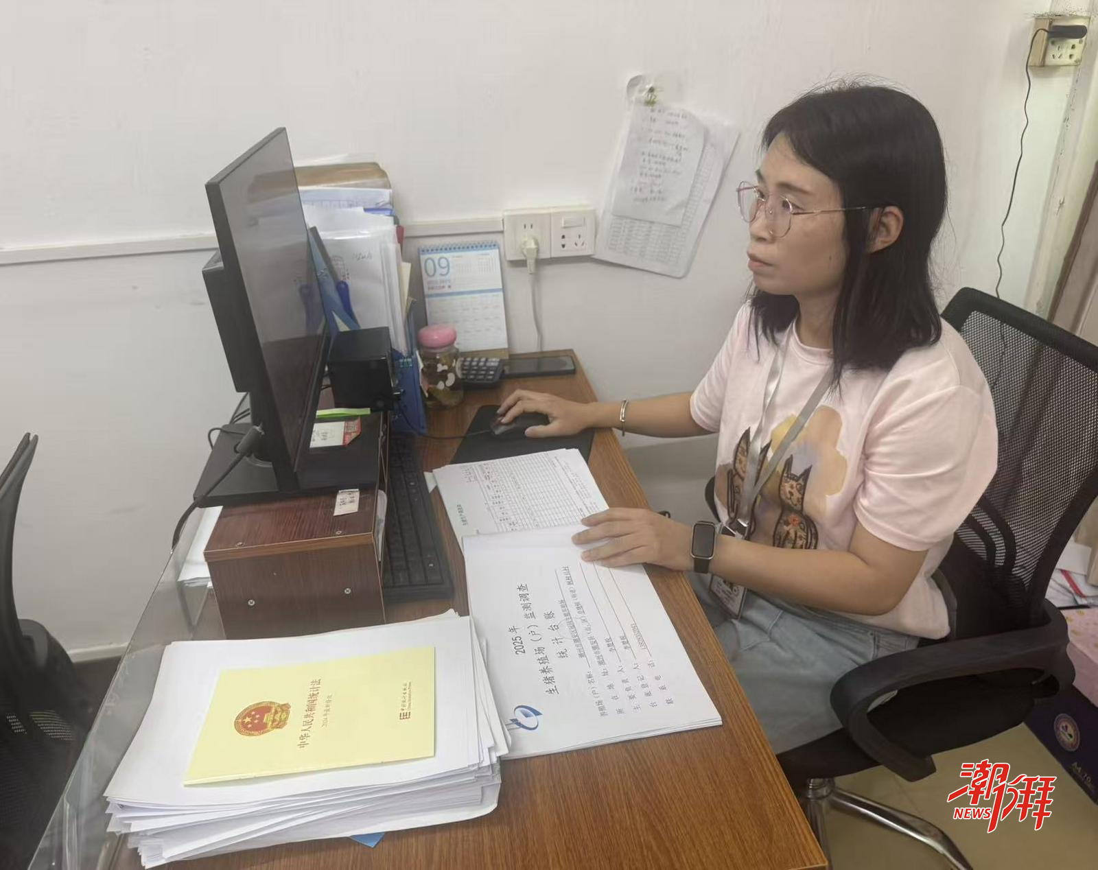 李珊珊正核對調查數(shù)據(jù)。 潮州日報全媒體記者 鄭新培 攝