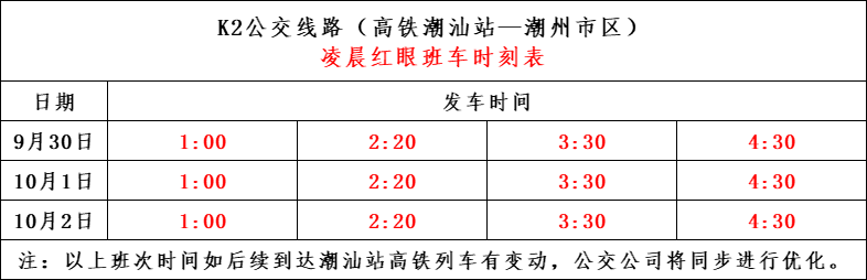 同時,K2公交線路與高鐵列車班次對應,開通凌晨紅眼班次,與高鐵班車同步確保凌晨到達旅客出行需求,為旅客提供出行兜底服務,具體如圖: