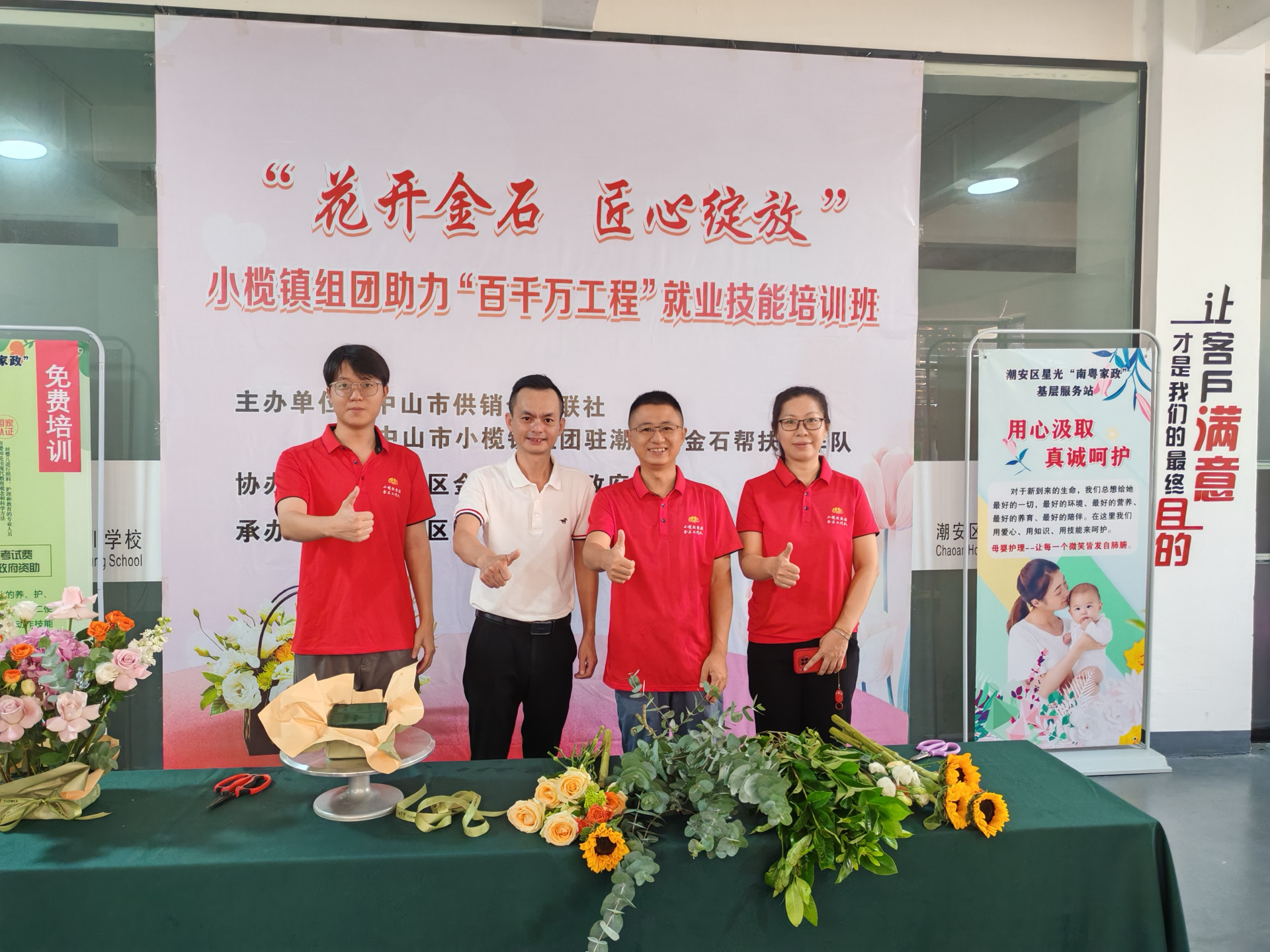 近日,中山市供銷合作聯社聯合小欖鎮組團駐潮安區金石鎮幫扶工作隊在金石鎮成功舉辦“花開金石 匠心綻放”插花藝術就業技能培訓班,提升原建檔立卡脫貧勞動力、防返貧監測對象及外省在潮務工困難勞動力等重點群體的就業能力,吸引了56名學員積極參與。