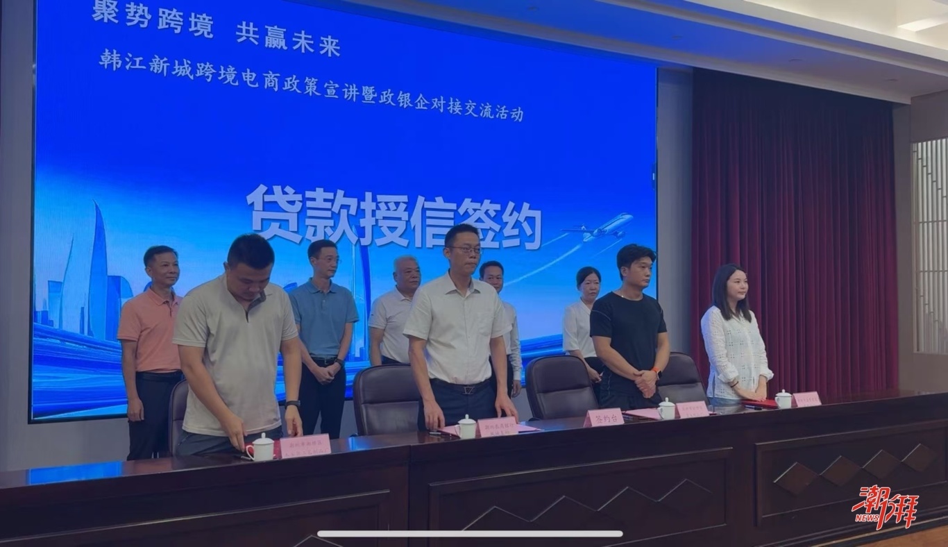 本次活動聚焦韓江新城經濟建設發展需求,現場詳細宣講電商類相關政策,助力企業精準掌握政策紅利,并針對韓江新城片區企業需求,介紹專屬電商金融服務方案,為企業解決融資難提供方向。潮州農商銀行、韓江新城企業代表也在現場進行貸款授信簽約,將金融支持落到實處。活動還邀請國內知名跨境電商資深專家余毅圍繞“內銷轉外銷”業務開展專業指導,為企業拓展海外市場、轉型發展提供實操經驗。
