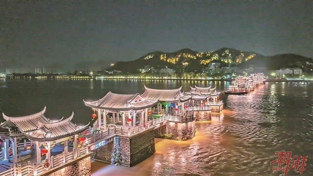 夜幕下,韓江廣濟(jì)橋燈光璀璨。