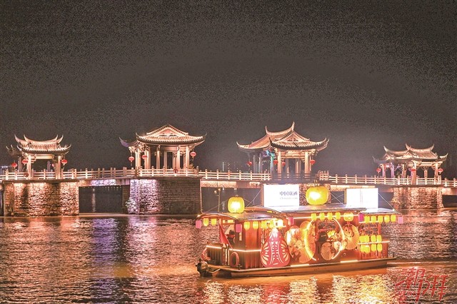 潮州文旅投集團(tuán)重點(diǎn)打造了具有潮州特色的標(biāo)志性活動(dòng),以創(chuàng)新形式展現(xiàn)城市魅力,增強(qiáng)游客體驗(yàn)。在廣濟(jì)橋及韓江水面推出了全新的“津梁?jiǎn)⑻眱x式和“洄洄響季”巡游音樂(lè)會(huì),融合潮州大鑼鼓、鯉魚(yú)舞、府樓猴擊鼓、燈船音樂(lè)表演等元素,將傳統(tǒng)非遺與現(xiàn)代演藝相結(jié)合,熱門歌手登船演唱。該活動(dòng)免費(fèi)向公眾開(kāi)放,每日吸引大量市民游客駐足觀看,成為國(guó)慶期間潮州古城聚人氣的文化盛事,有效提升了城市的友好度和美譽(yù)度。
