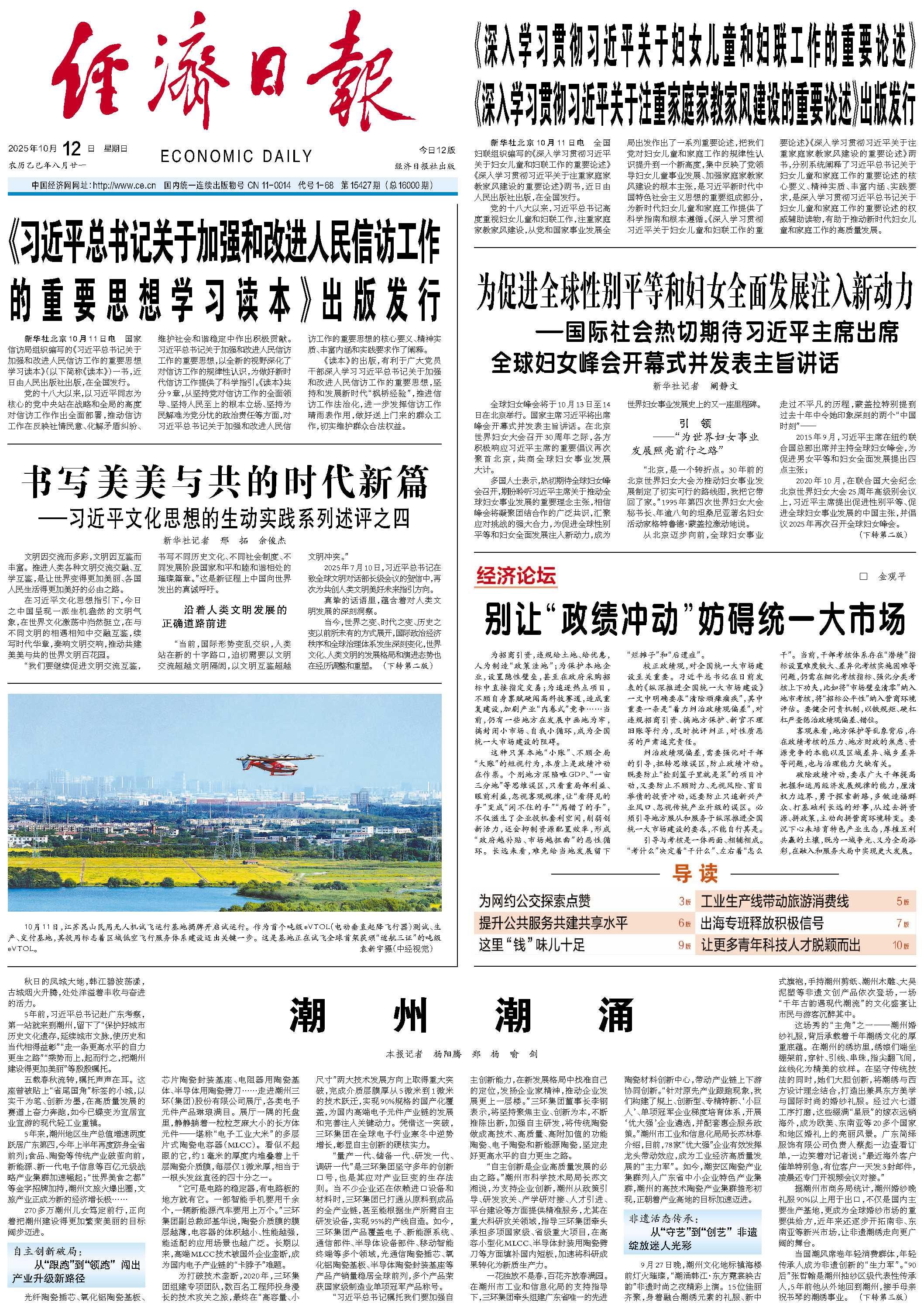 今天,經(jīng)濟(jì)日?qǐng)?bào)頭版刊發(fā)文章《潮州潮涌》,介紹習(xí)近平總書記赴廣東考察,第一站就來(lái)到潮州,留下了“保護(hù)好城市歷史文化遺存,延續(xù)城市文脈,使歷史和當(dāng)代相得益彰”“走一條更高水平的自力更生之路”“乘勢(shì)而上,起而行之,把潮州建設(shè)得更加美麗”等殷殷囑托。全文及報(bào)紙版面如下: