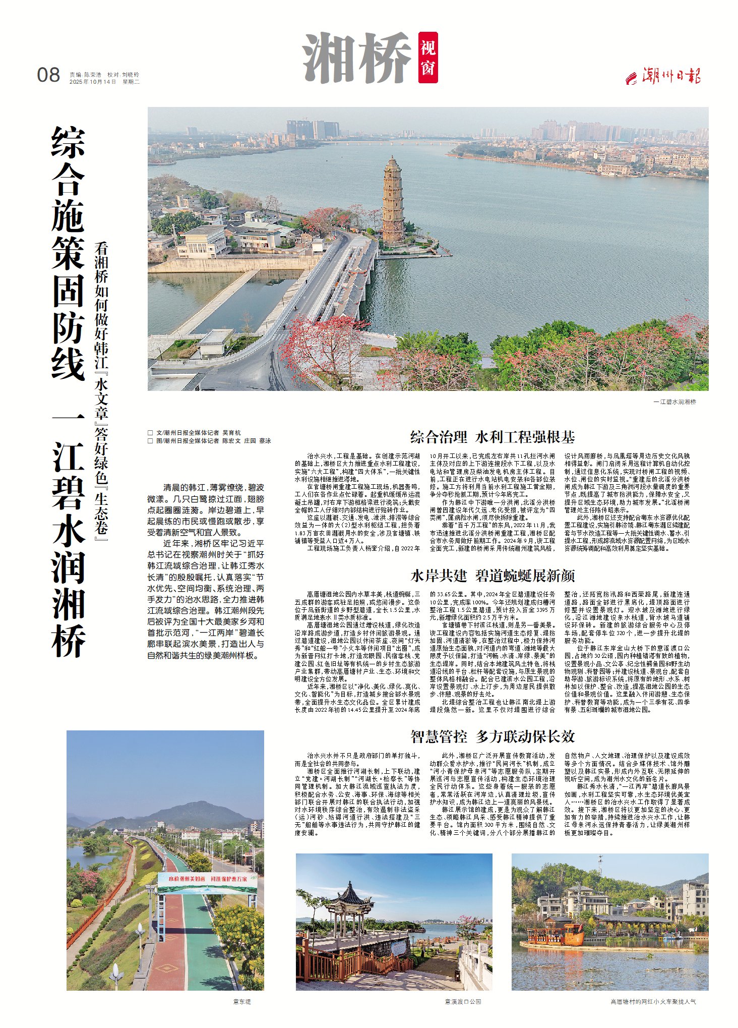 韓江秀水長清,“一江兩岸”碧道長廊風景如畫,水利工程堅實可靠,水生態環境優美宜人……湘橋區的治水興水工作取得了顯著成效。接下來,湘橋區將以更加堅定的決心、更加有力的舉措,持續推進治水興水工作,讓韓江母親河永遠保持青春活力,讓綠美潮州樣板更加璀璨奪目。