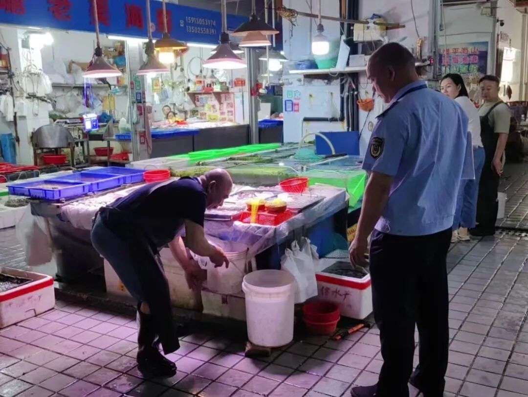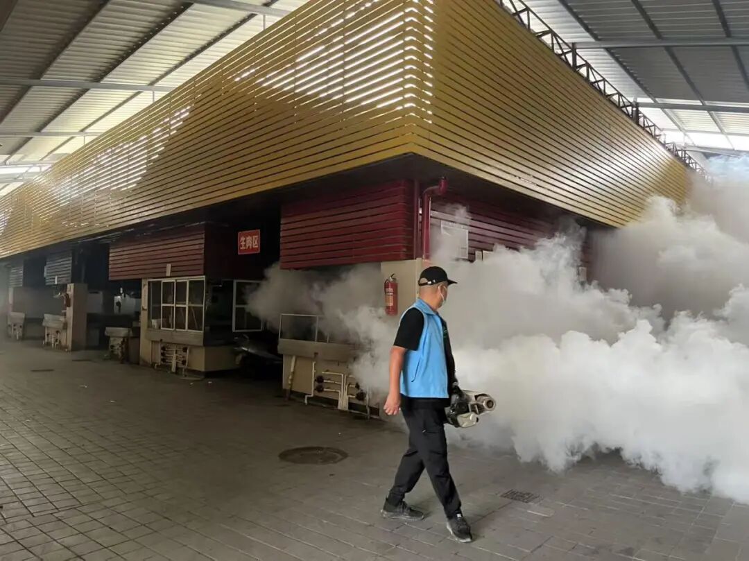 據悉,8月份以來,區市場監管局已累計出動執法人員642人次,檢查市場483家次,以高頻次、嚴標準的監管推動防控措施落地。各農貿市場開辦方積極響應、主動配合,嚴格落實“兩熱”防控主體責任,累計開展噴藥消殺807場次,全面改善市場環境衛生,從源頭有效控制蚊蟲孳生。