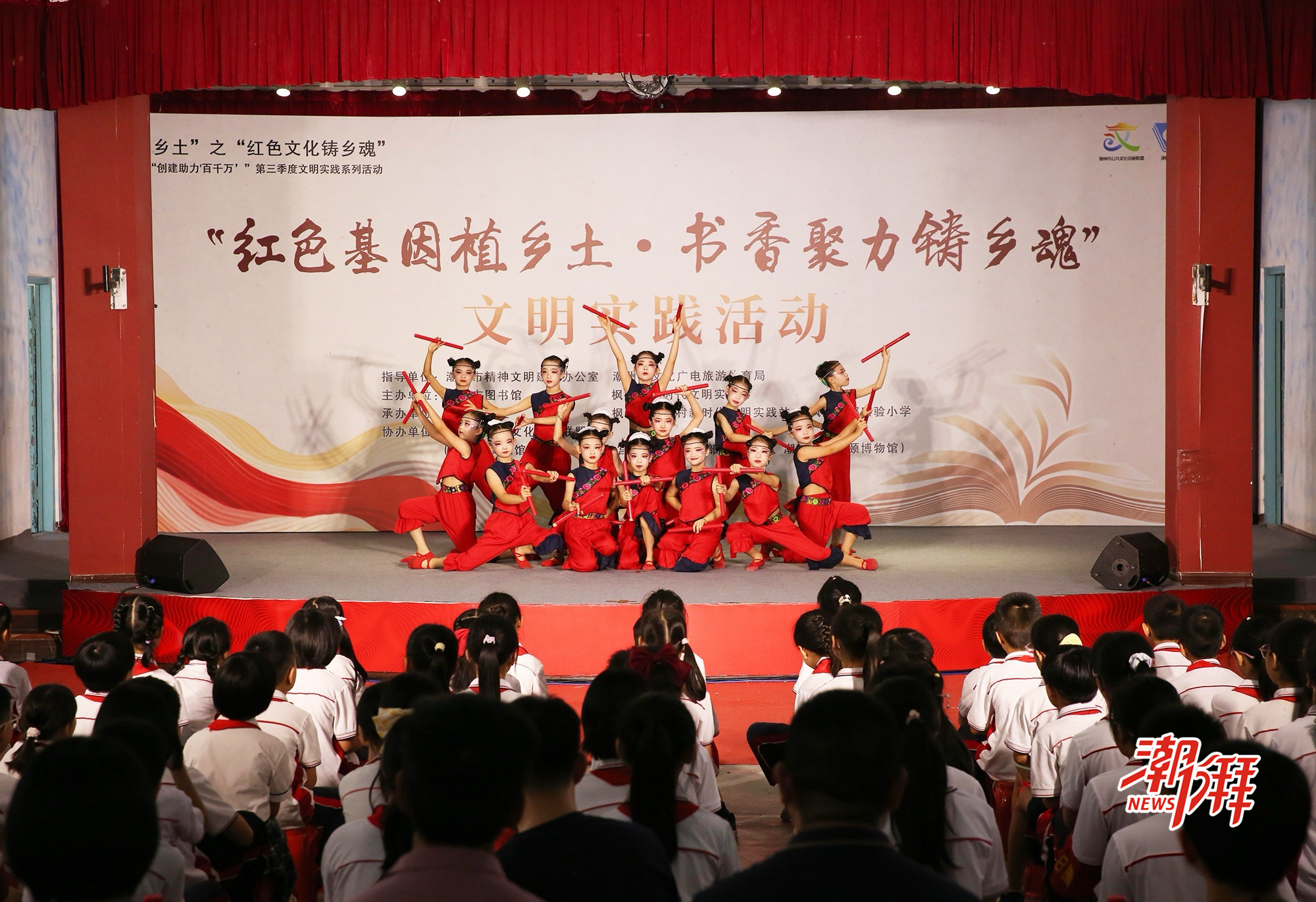 “紅色基因植鄉(xiāng)土·書(shū)香聚力鑄鄉(xiāng)魂”文明實(shí)踐活動(dòng)以“匯演+展覽+體驗(yàn)”的多元形式,讓社會(huì)主義核心價(jià)值觀深植學(xué)生心中。(潮州日?qǐng)?bào)全媒體記者 莊園 攝)