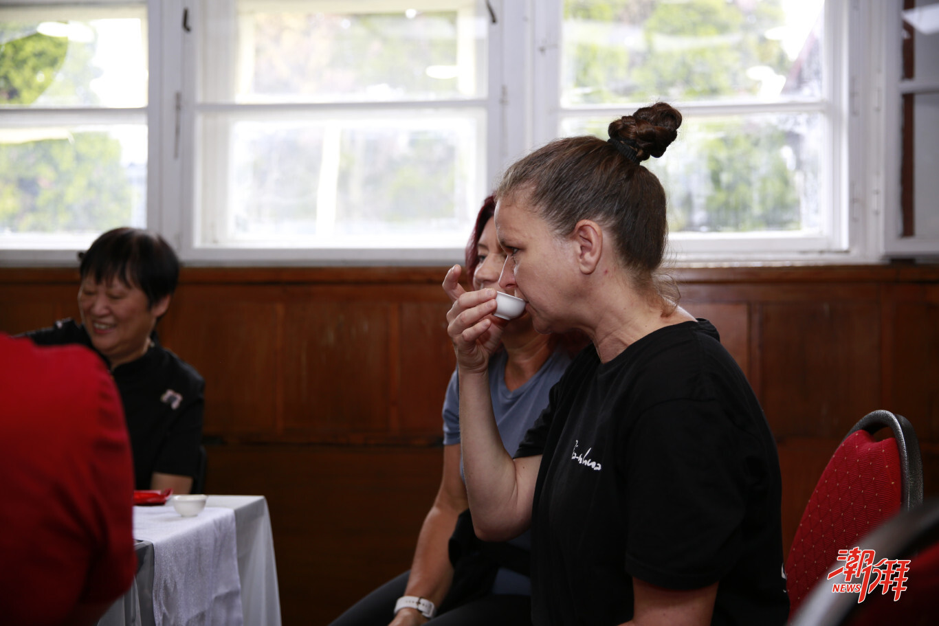 活動現場,潮州非遺展示區同樣吸引眾多禪武聯盟成員駐足體驗。潮州高級茶藝師石瑞燕老師端坐在紅泥火爐旁,嫻熟地沖泡鳳凰單叢茶,還細致講解潮州工夫茶二十一式。火爐中炭火微微泛紅,朱泥壺飄出的縷縷茶香,與現場的鼓點、笑聲交織,營造出愜意溫馨的氛圍。其間,石瑞燕與李康迪還向在場成員介紹潮繡、潮州木雕、潮州手拉朱泥壺等非遺項目,通過豐富的文化體驗,讓國際友人沉浸式感受潮州文化的獨特魅力。