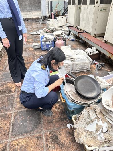積水看似是小事,實則是蚊媒孳生的“溫床”,更是“兩熱”防控的薄弱環節。湘橋區衛健局對逾期不整改、整改不到位的單位,堅決依法從嚴處罰。兩家住宿場所因積水孳生蚊蚴被責令整改和警告,執法人員“回頭看”發現陽性積水問題依舊存在。執法人員依據《廣東省愛國衛生工作條例》等相關法規,對其分別處以罰款1000元的行政處罰。一家住宿場所因大堂景觀水池及天臺水桶存在積水,積水中見有蚊蚴孳生,且有3名服務人員未獲得有效健康體檢合格證明從事直接為顧客服務工作,違反了《廣東省愛國衛生條例》《公共場所衛生管理條例實施細則》等相關法律法規的規定,湘橋區衛生健康局依法責令該店立即改正違法行為并作出警告、罰款800元的行政處罰。一家住宿場所因花盆托盤中存在積水,積水中見有蚊蚴孳生,未依法取得公共場所《衛生許可證》擅自營業。違反了《公共場所衛生管理條例實施細則》《廣東省愛國衛生條例》等相關法律法規的規定,湘橋區衛生健康局依法責令該店立即改正違法行為并作出警告、罰款12500元的行政處罰。