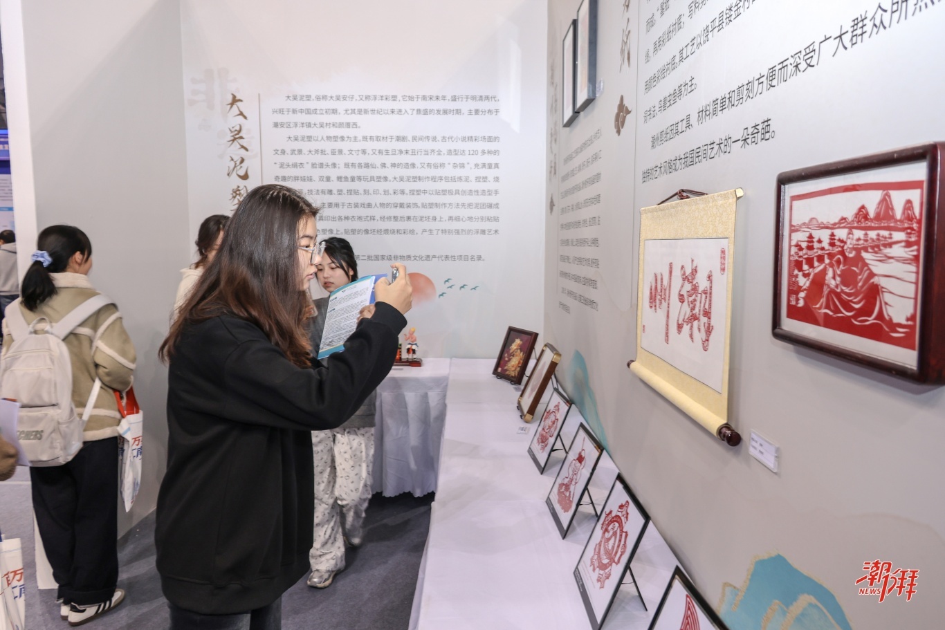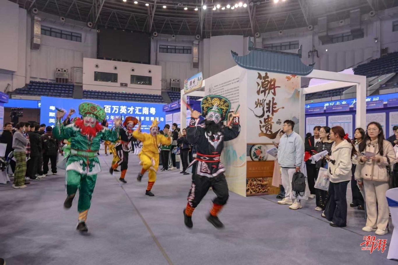 為讓中原學(xué)子更深入地了解廣東文化,感受南粵風(fēng)情,主辦方將潮州非遺“搬”到了招聘現(xiàn)場(chǎng)。英歌舞表演震撼開場(chǎng),剪紙、麥稈畫、大吳泥塑等潮州非遺代表性項(xiàng)目的展演同步進(jìn)行,工夫茶品鑒、潮劇欣賞、特色文旅產(chǎn)品展示區(qū),以及“十五運(yùn)”文創(chuàng)產(chǎn)品展示等環(huán)節(jié),讓學(xué)子在求職之余能沉浸式感受嶺南文化,全方位體會(huì)廣東對(duì)人才的重視與誠(chéng)意。