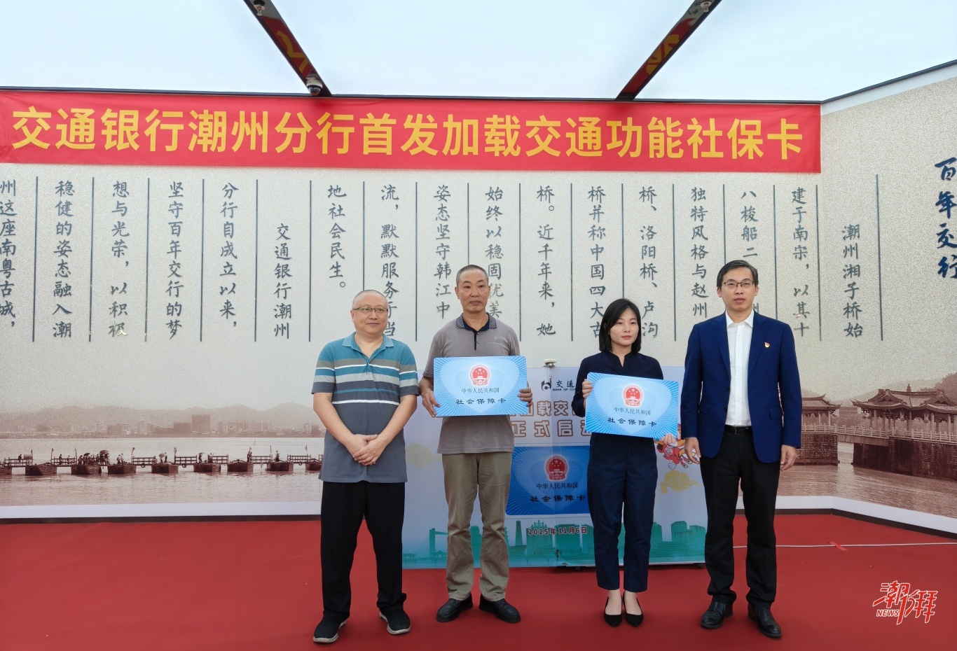 11月6日,我市首批加載全國交通功能的第三代社會保障卡正式發行。即日起,未持有社??ǖ氖忻窨蓴y帶本人身份證前往交通銀行潮州分行各營業網點申領,已持有交通銀行社??ǖ氖忻窨擅赓M換卡,享受人社服務、金融功能和全國公共交通出行“多卡合一”的便捷體驗。