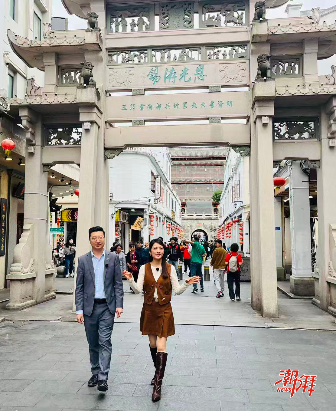 當天下午,張典一行漫步潮州古城,先后走訪廣濟橋、牌坊街等標志性景點,開啟了一場“潮味”之旅。在牌坊街的一家潮州木雕藝術館內,他駐足欣賞“金漆蝦蟹簍”等精美木雕作品,并與木雕藝人深入交流,了解這項國家級非遺的技藝精髓與應用場景,對潮州木雕的精湛工藝贊不絕口;走進工夫茶館,他靜靜欣賞了茶藝師行云流水般的“潮州工夫茶二十一式”演示,細品鳳凰單叢的氤氳茶香,聆聽韻味悠長的潮劇唱段……“這是我首次到訪潮州,親身體驗比想象中更精彩!”張典表示,此前已通過美食與文化對潮州有所了解,此次實地探訪更添期待。