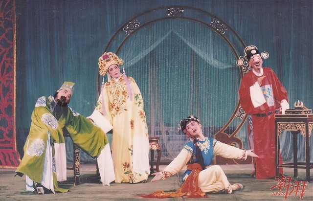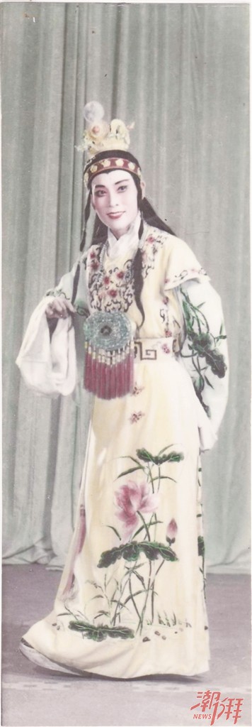 1960年我剛好“出花園”后就進入歌舞團,就是原來的潮安文工團。以前跟現在不一樣,只要看你條件比較合適,有當演員的潛質就可以加入。當時我還在村里讀小學,以前農村都這樣,沒什么可以娛樂的,到了晚上,鄰居小孩都在一起玩。有一個比我大的鄰居在金山中學讀書,周末回去跟我們幾個小孩在一起玩耍,叫我們一起唱歌。他唱歌特別好聽,我喜歡聽他唱的《草原上升起不落的太陽》,叫他教我,學了幾個星期,唱得還有模有樣,他問我:你的嗓子很好,要不要去考歌舞團學唱歌?小孩根本就不懂考歌舞團能做什么,但我自己喜歡唱歌,還有一點就是如果考上了,起碼能自己生活。我答應他后的一個星期天,他就帶著我來到現在潮劇團的這個地方試試,這里原來是歌舞團的,潮劇團當時是在李厝祠。面試我的是陳瑪原老師、孫宏老師,他們聽我唱了一首曲子以后,就說:你回去帶衣服過來報到。我回到家就用一個“呷咇”(行李箱)收拾了幾件換洗衣服去報到了。當時的歌舞團班底就是金山中學的宣傳隊,然后再從外面招收像我這樣的人進來充實隊伍。