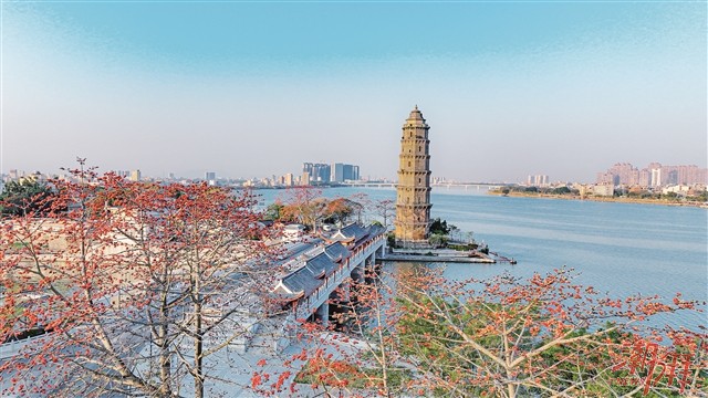 從潮州廣濟橋東南去3公里,有一座七層八面磚石結構的古塔,挺立在韓江東岸,就像一樁巨柱,直插藍天,俯視滔滔韓流,放眼古城新貌,這就是名聞海內外的鳳凰塔。